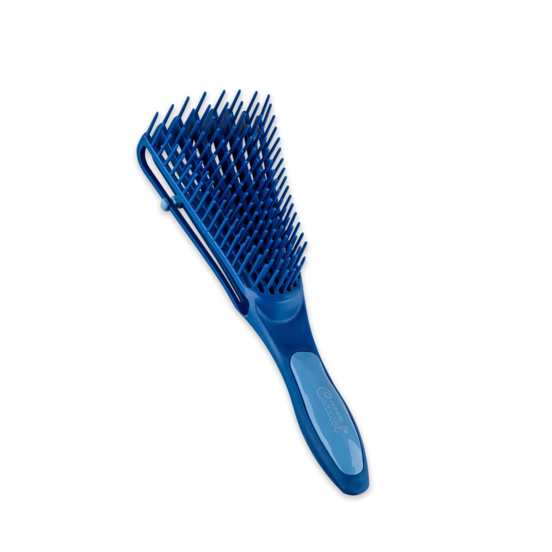 El cepillo Caracól ha sido desarrollado especialmente para que la rutina de peinar el cabello, encrespado, afro y rizado sea cómoda, práctica y mucho más fácil! Sus cerdas flexibles y suaves, además de masajear el cuero cabelludo, se moldean a medida que te cepillas el cabello, sin dolor, sin tirar o romper los mechones: el cepillo perfecto para desenredar y definir los rizos. Con cuerpo anatómico y mango ergonómico para un fácil manejo, Caracól está fabricado con material antiestático que evita el encrespamiento. Viene con un clip desmontable, para fijar o ajustar la distancia de las cerdas, reduciendo su flexibilidad. Fabricado en material resistente, se puede utilizar en el baño o con secadora, además de ser fácil de limpiar y almacenar. Para todas las edades! También se puede utilizar en procesos de ploopping y acabado.