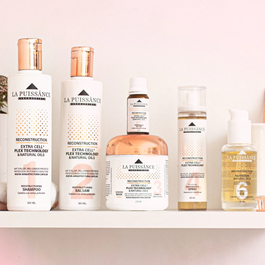 Es una línea compuesta por 6 pasos, la aplicación de todos los productos potencia la efectividad del tratamiento y acelera el resultado de la reconstrucción capilar.