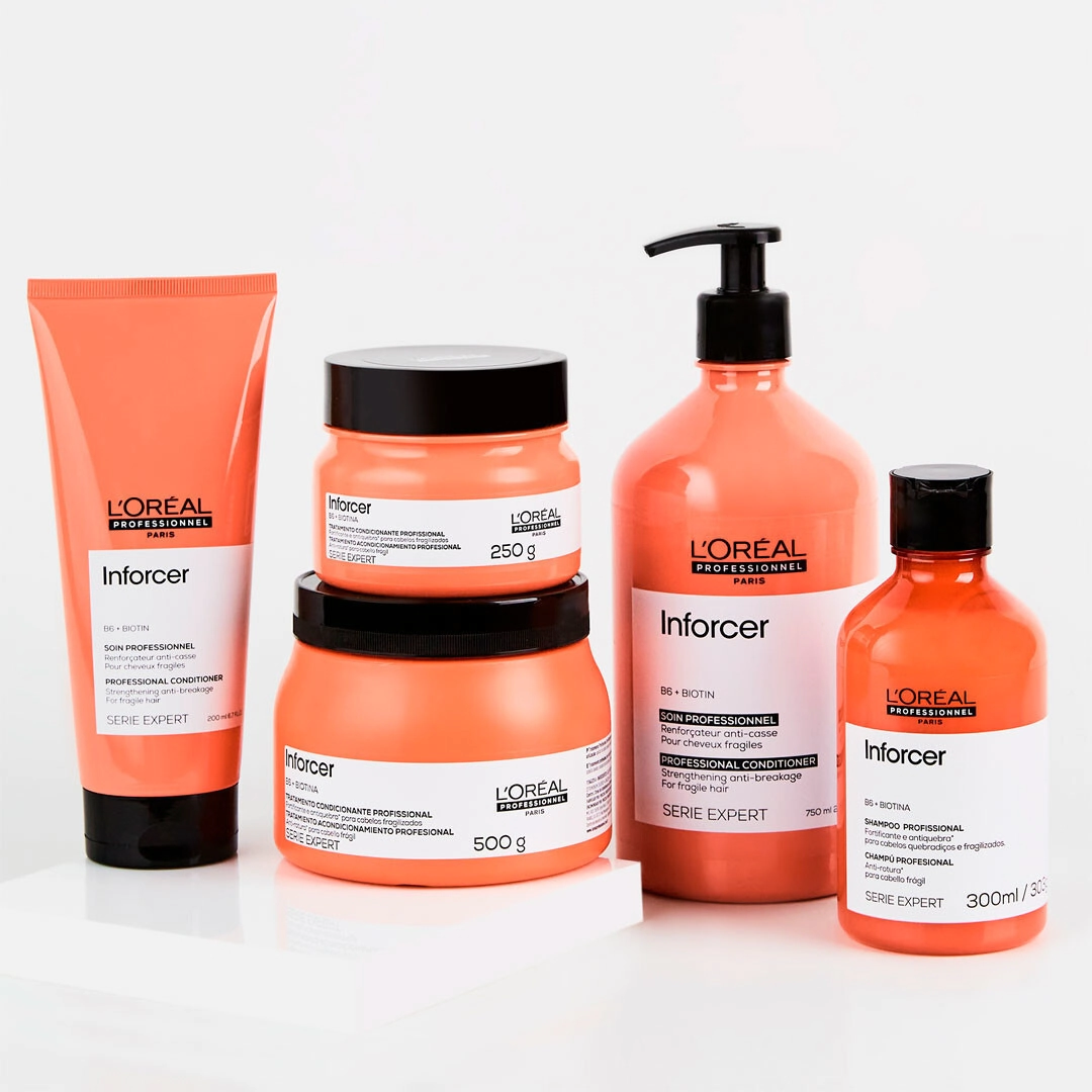 Fórmula ligera para cabello normal a frágil. El acondicionador ayuda a mejorar la manejabilidad. Enriquecido con Vitamina B6 y Biotina. Una tecnología especialmente diseñada para combatir la rotura y las puntas abiertas. Con el uso continuado, el acondicionador Inforcer ayuda a que tu cabello se vuelva más resistente y fuerte. El acondicionador reforzador se recomienda para: Cabello frágil y quebradizo, especialmente cabello largo. Para obtener los mejores resultados, utilícelo junto con el shampoo Serie Expert Inforcer.