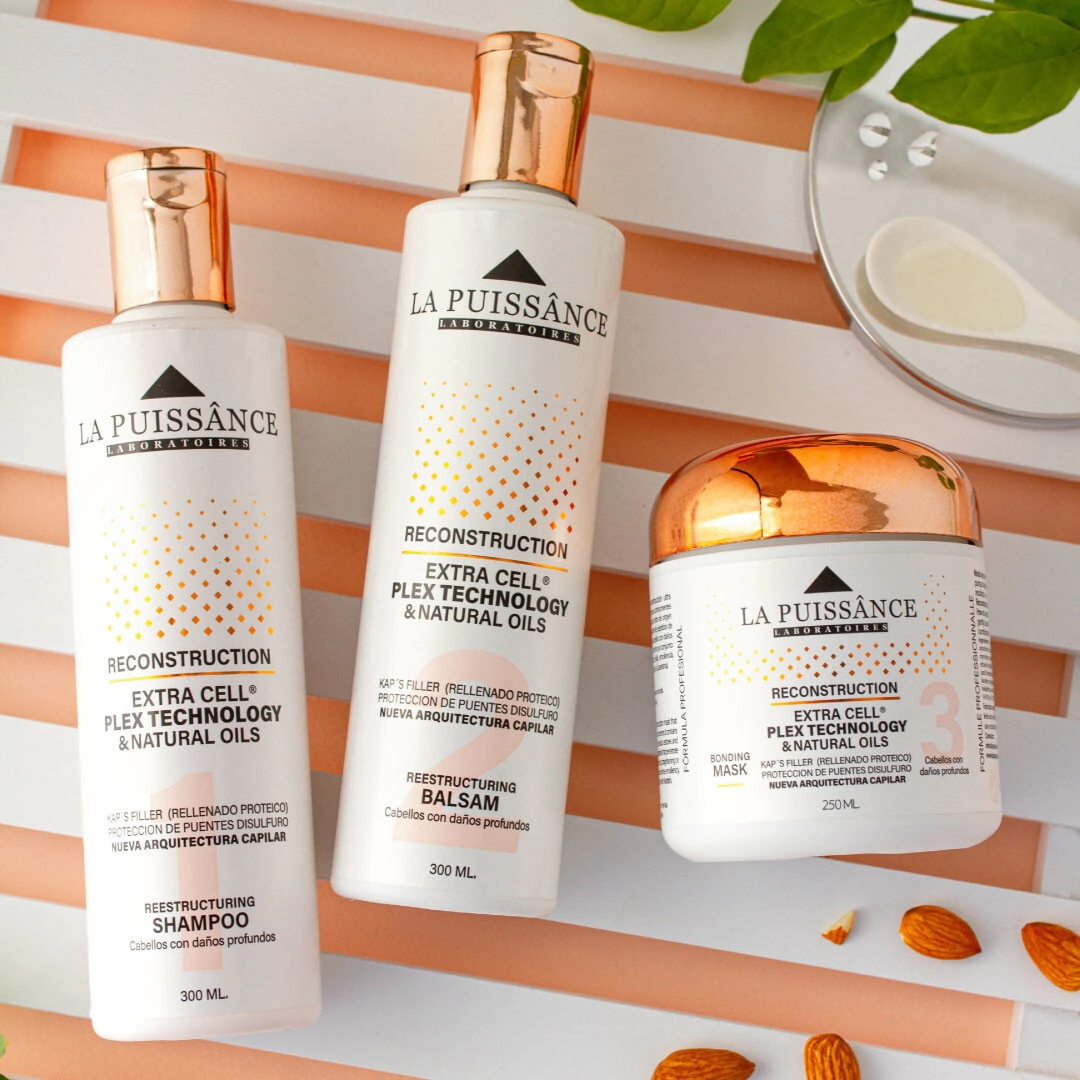 Es una línea compuesta por 6 pasos, la aplicación de todos los productos potencia la efectividad del tratamiento y acelera el resultado de la reconstrucción capilar.