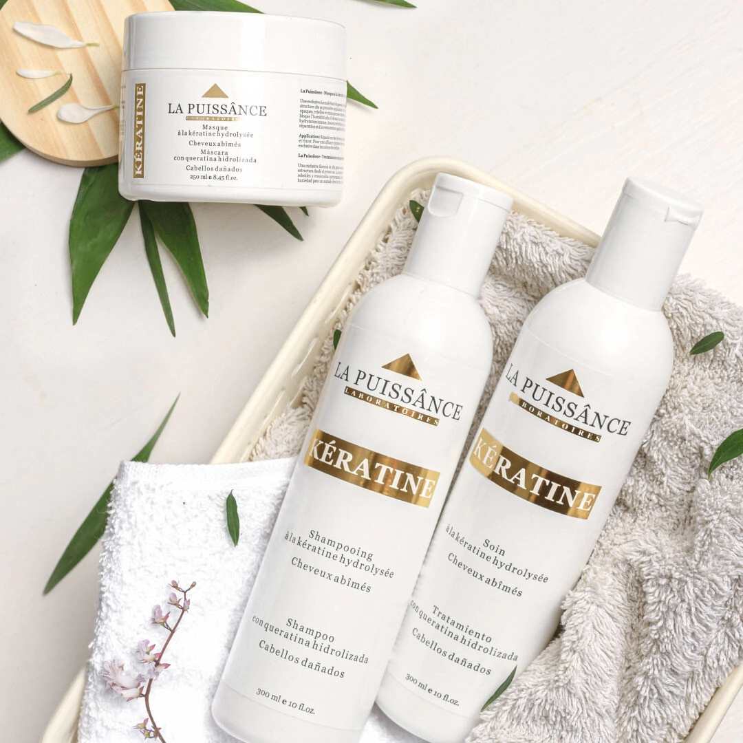 Una exclusiva fórmula de alta gama especialmente creada para el cabello seco y dañado que favorece la transformación de su estructura desde el primer uso. La innovadora tecnología con activos reconstructores de La Puissnce suaviza las hebras opacas, rebeldes y erosionadas químicamente gracias al polímero catiónico, un agente de cuidado de alta precisión, que bloquea la humedad para un acabado libre de frizz. Control del cabello con absoluto movimiento, hidratación intensa, sedosidad y brillo desde la raíz hasta la punta. Su alto contenido de queratina hidrolizada ayuda a reparar y restaurar rápidamente la fibra capilar de adentro hacia afuera, con resultados extraordinarios.