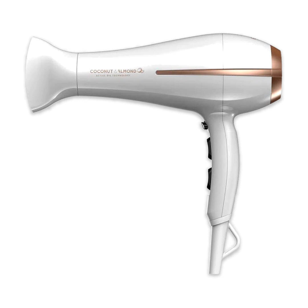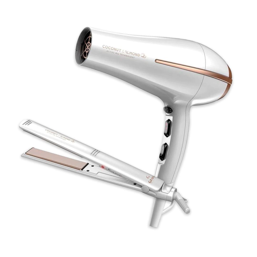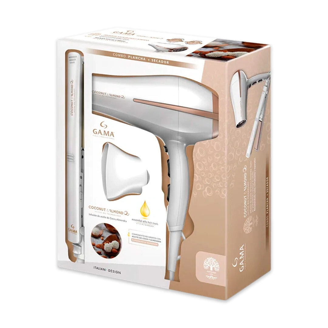 El secador posee un motor DC de reducidas dimensiones que generan una solución eficiente para bajos requerimientos de torque, son más pequeños y livianos que los motores AC (profesionales), y tienen buen caudal y baja presión. El pack contiene una infusión de aceite de coco y almendra que nutre en profundidad y protege el cabello, es recomendado como revitalizante y reparador.