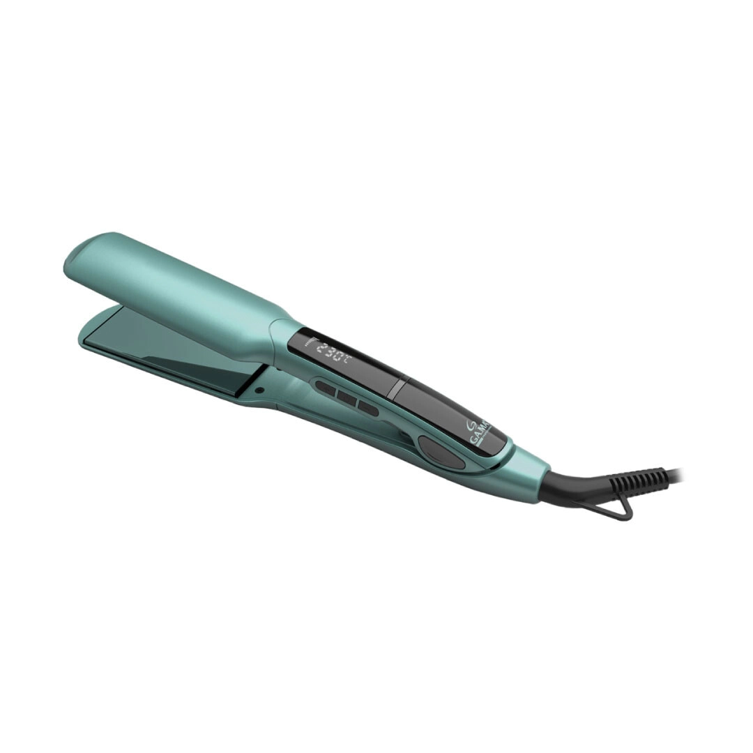 La plancha de pelo alisadora X-Wide Digital Kerashine 4D tiene sus patines recubiertos de tecnología MICRO-SHINE, la cual provee pigmentos de brillo extra al cabello, potenciando la iluminación natural del mismo. La KERATINA es parte de la estructura natural del cabello, se dice que el cabello es una fibra de keratina. La corteza (el 80% de la estructura capilar) está compuesta principalmente de este componente, como función principal es la encargada de aportarle resistencia al cabello y elasticidad. A partir de diferentes procesos químicos o mecánicos el cabello puede sufrir una pérdida de keratina y volverse más sensibilizado, visualmente opaco, poroso. Esta herramienta también tiene tecnología 4D Therapy, tecnología con oxígeno activo, el cual descongestiona el folículo piloso, mejora el medio ambiente del cabello y genera un efecto anti-aging. Cuenta con un display digital que te permite controlar y programar la temperatura de 150 a 230 grados. Sus patines extra anchos de 40 x 100 mm te permiten alisar mayor cantidad de cabello en menos pasadas y, al ser flotantes, facilitan el desplazamiento de la planchita. Además, tiene un tiempo de calentamiento de 50 segundos y posee un cable rotativo de 360 que evita enredos y facilita su manipulación.