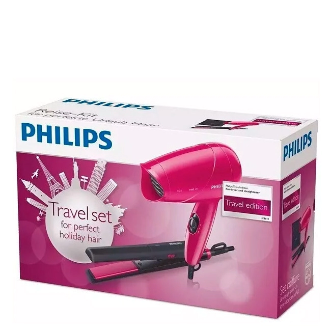 Este set viene con una funda para transportar, para uso en viajes. Está diseñada para guardar y proteger de los daños al secador y a la plancha para el cabello.