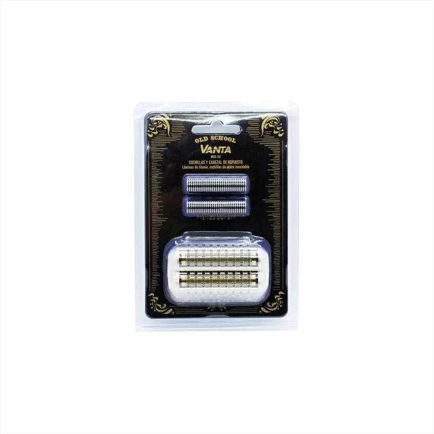 Vanta Old School Cuchillas y Cabezal de repuesto con láminas de titanio y cuchillas de acero inoxidable.