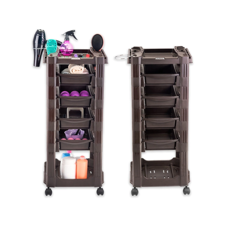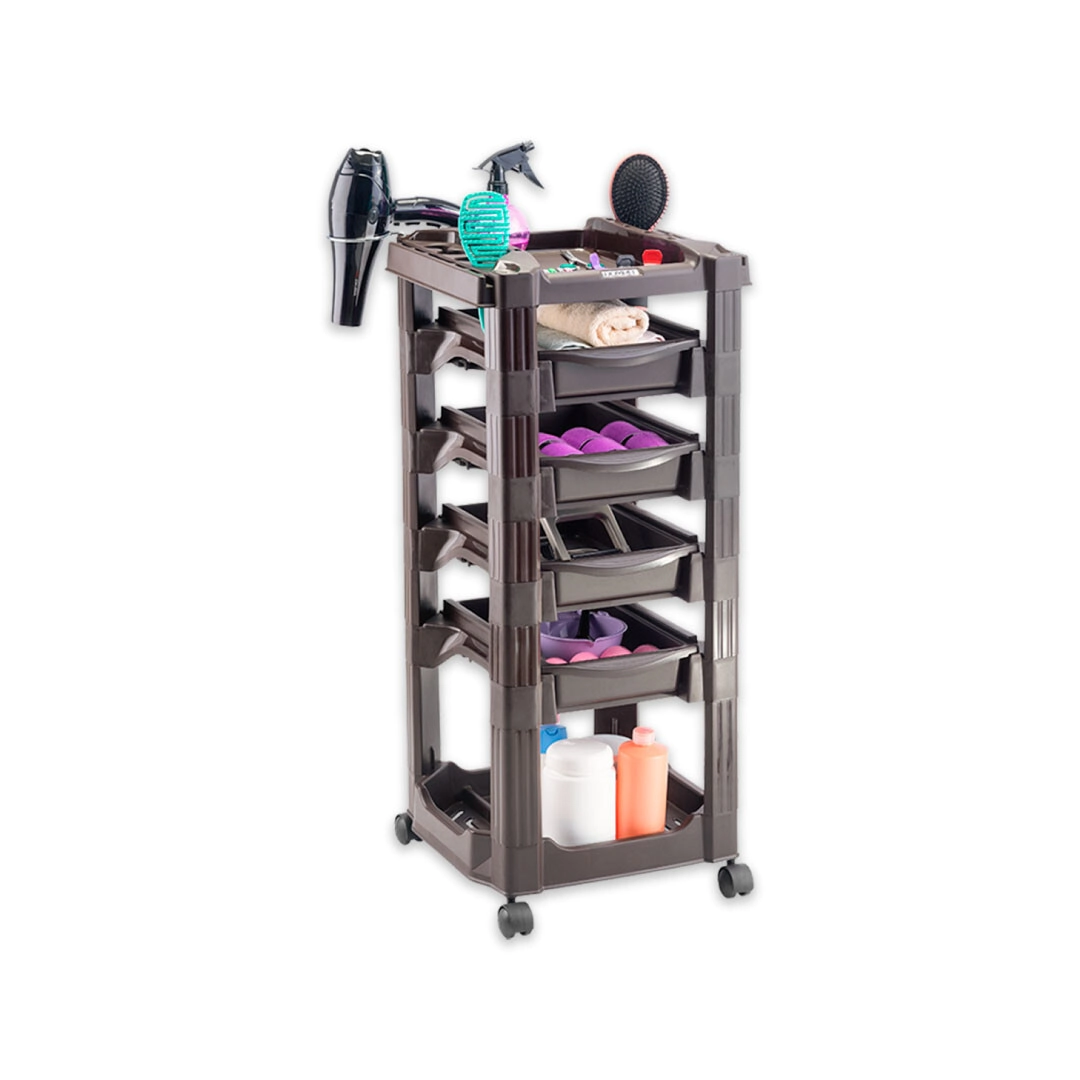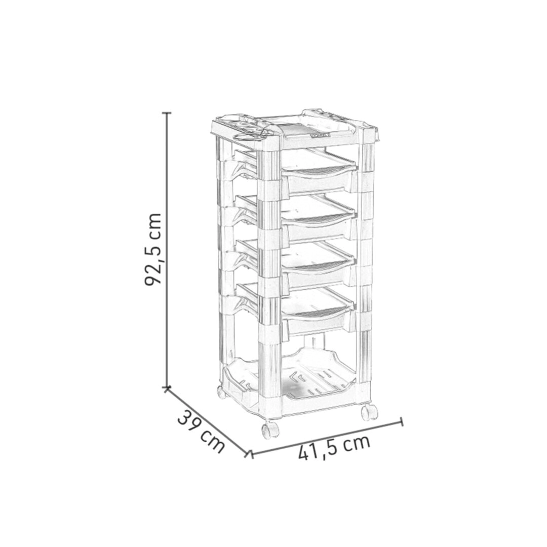 Tapa: la tapa tiene soporte para secador de pelo, pinceles, cepillos y tijeras. Es posible triplicar su tamaño y el área de trabajo, al acoplar dos cajones laterales, lo que le permite acomodar más accesorios;