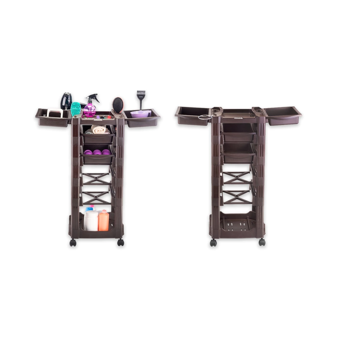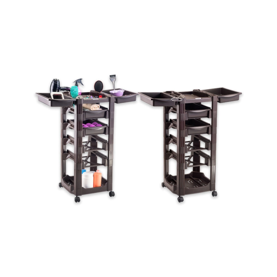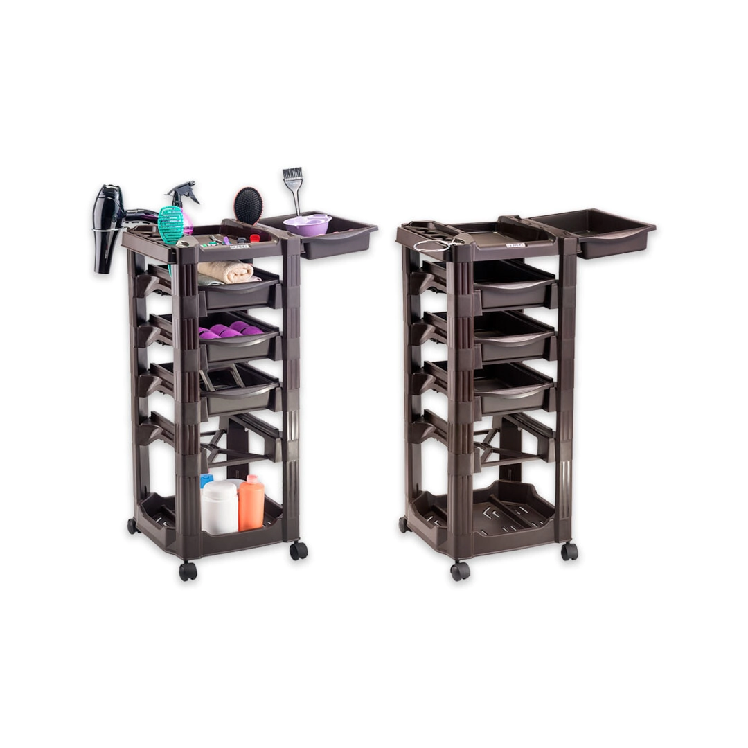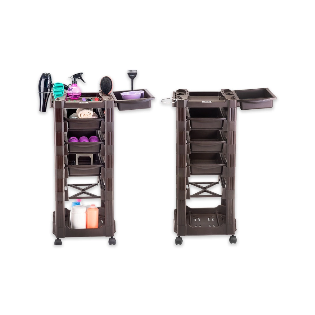 Tapa: la tapa tiene soporte para secador de pelo, pinceles, cepillos y tijeras. Es posible triplicar su tamaño y el área de trabajo, al acoplar dos cajones laterales, lo que le permite acomodar más accesorios;