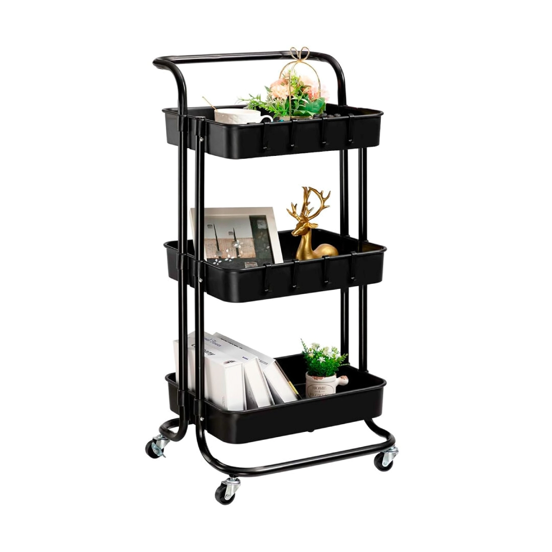 Carrito de almacenamiento con ruedas se convertirá en tu ayudante de almacenamiento. Este práctico carrito rodante proporciona 3 niveles de estantes mediante cestas. Puedes poner cualquier cosa en él, como artículos de tocador, toallas, plantas, cosméticos, alimentos, productos de costura, suministros de arte, artículos esenciales de lactancia, etc. Ahorra espacio en el suelo y optimiza la utilización del espacio al máximo posible, y ayuda a organizar tus cosas y a tenerlo todo ordenado.