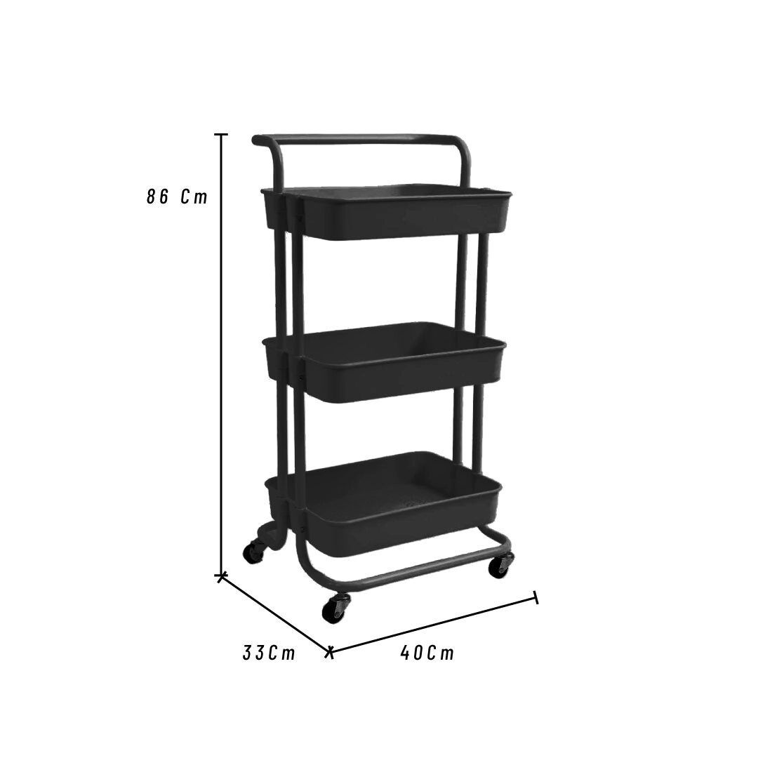 Robusto y estable, con 3 niveles está hecho de acero de alta calidad (estructura) y ABS (las bandejas). Las cestas son de plástico ABS, que es un material fuerte y duradero, resistente al agua y al desgaste y que no se deforma fácilmente.