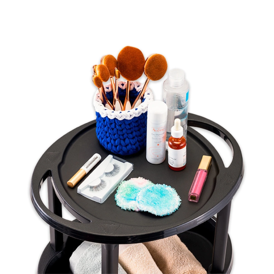 Bandejas: Contiene 3 bandejas de plástico liso con fácil acceso, que promueven la funcionalidad al organizar / acomodar productos y accesorios;