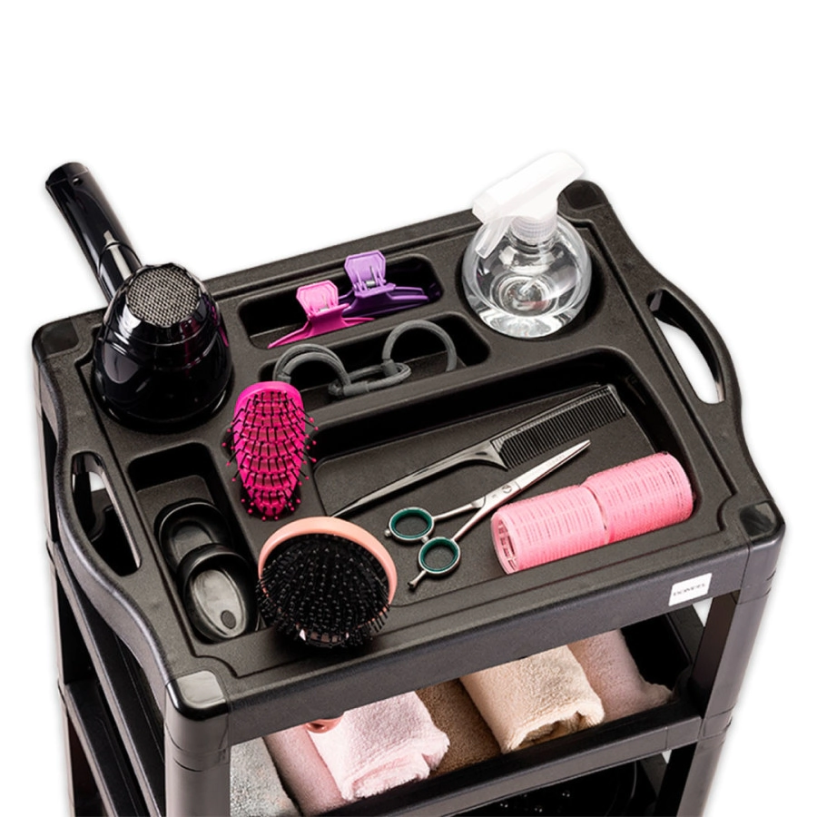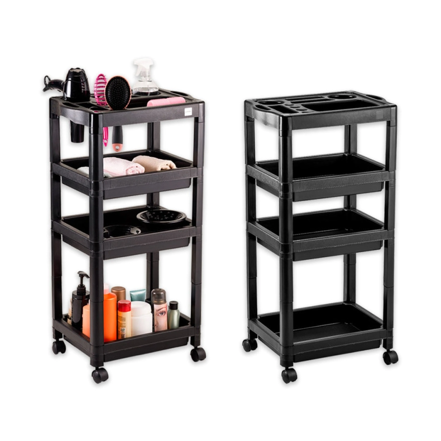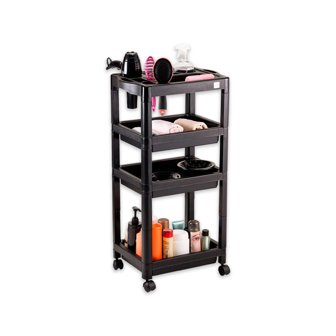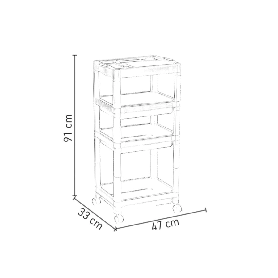 Bandejas: Contiene 3 bandejas de plástico liso con fácil acceso, que promueven la funcionalidad al organizar / acomodar productos y accesorios;