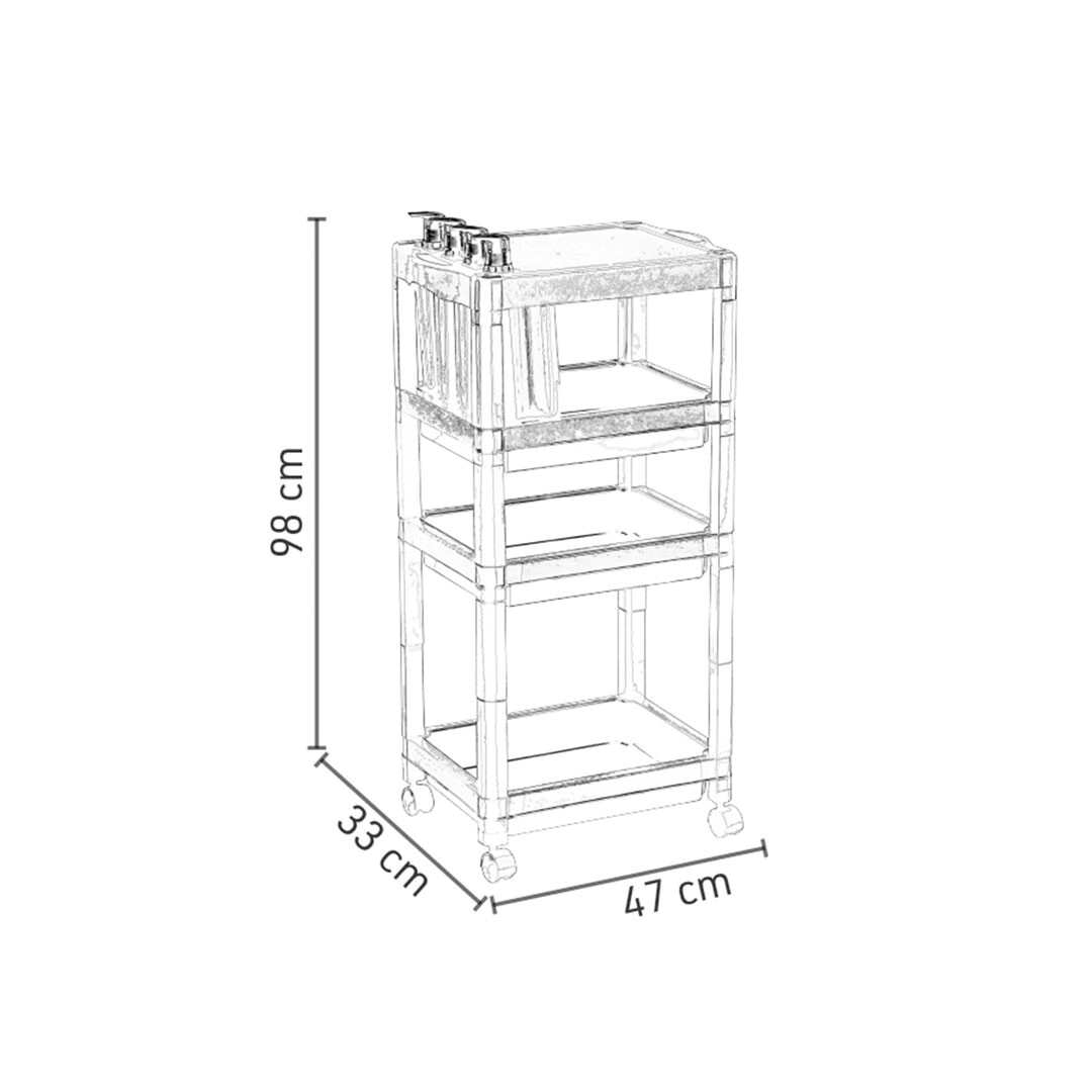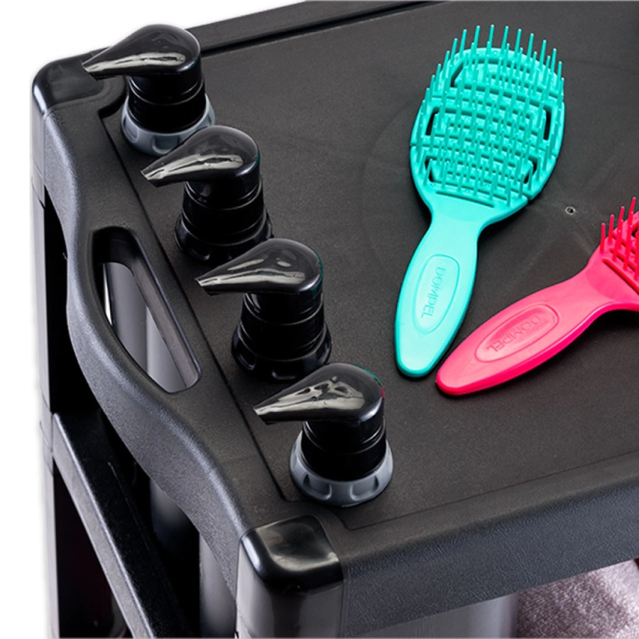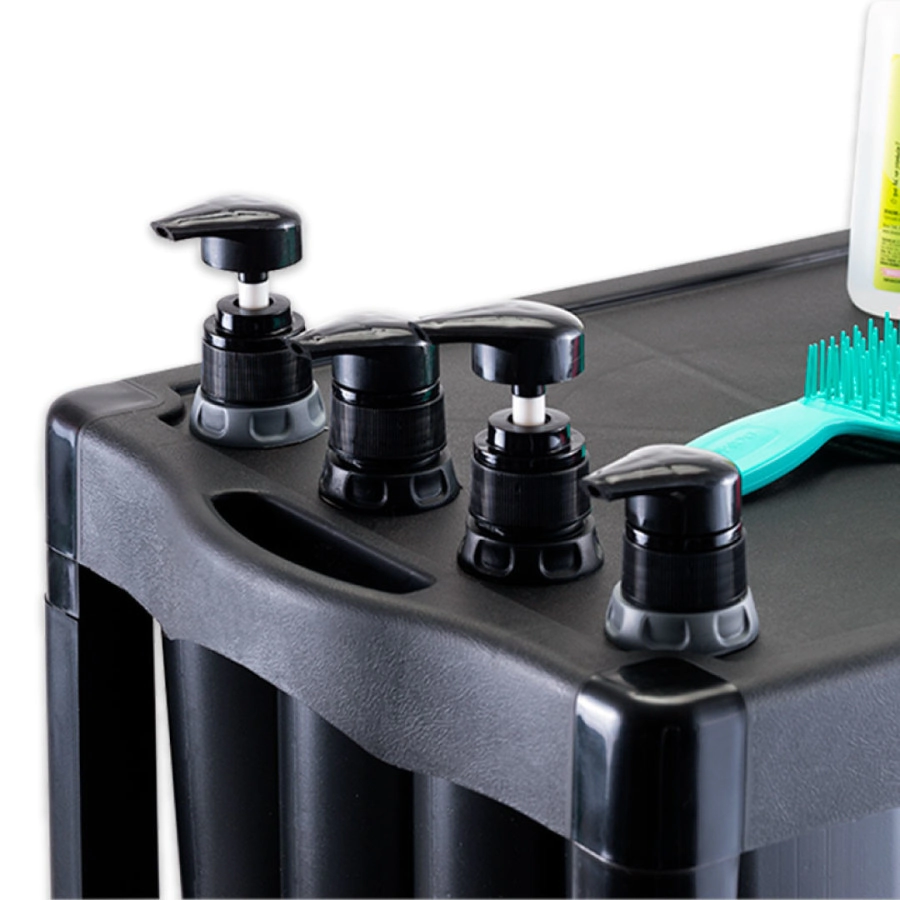 El diseño modular y las botellas de champú y acondicionador Viena lo convierten en un carro auxiliar indispensable para el lavacabezas.