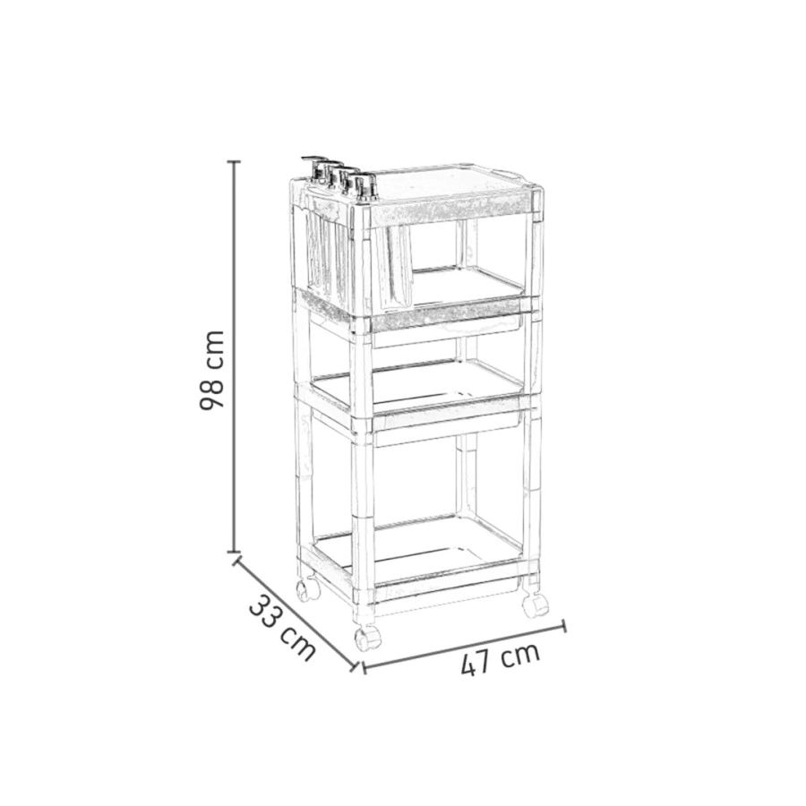 Estantes: Tiene 3 estantes auxiliares para organizar y acomodar toallas y materiales para uso diario;