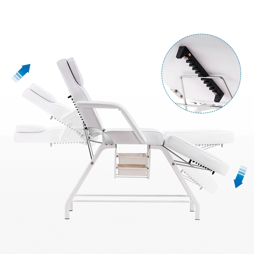 Fácil ajuste: el respaldo y el reposapiernas se pueden ajustar fácilmente de forma manual. La cama de belleza ajustable satisface las necesidades de los clientes en diferentes escenarios, como cuidado facial, masajes, tatuajes, SPA, depilación, etc.