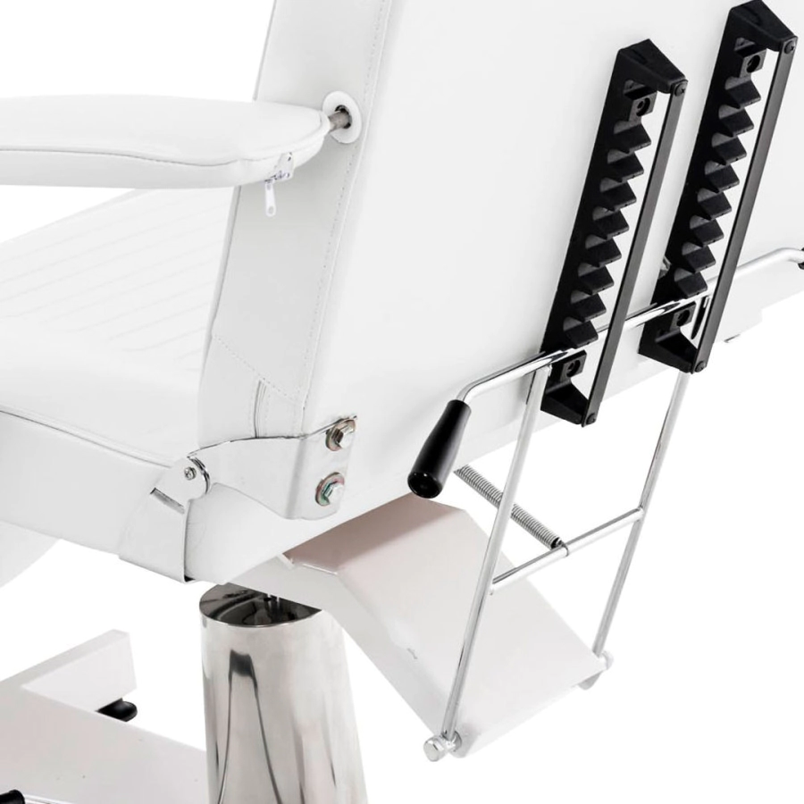 Esta camilla de masaje hidráulica proporciona bienestar puro para todos los tratamientos cosméticos, ya sean tratamientos faciales, de escote o corporales, son ideales para consultas odontológicas, de fisioterapia, etc. La camilla tiene una sección de pie dividida que se puede bloquear verticalmente o hasta 45 hacia abajo. Tiene un acolchado con espuma celular fina de alta calidad y una cubierto con cuero artificial de fácil cuidado. El pie resistente está hecho de metal y está provisto de protectores para el piso que pueden ajustarse individualmente a unos pocos centímetros de altura, para compensar los golpes. La altura de la camilla se puede ajustar hidráulicamente mediante una bomba de pie de 60 a 75 cm. El respaldo se puede plegar hacia atrás completamente o en posición vertical hasta 80 . La camilla se puede colocar completamente horizontal. Los reposabrazos son desmontables, pero también se adaptan a la posición acostada. La camilla se puede girar 360 . Debajo del reposacabezas extraíble hay una abertura en la cara, de modo que se pueden realizar masajes en esta cama.