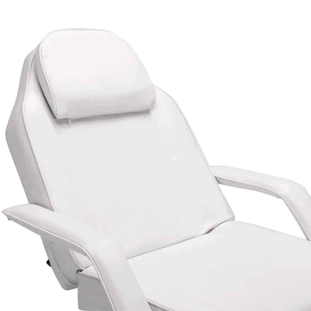 Camilla de salón multiusos. Esta unidad es excelente para hacerse un tatuaje, un masaje de cuerpo completo, un tratamiento facial y mucho más. Esta camilla está hecha de un marco de acero soldado resistente de alta calidad, respaldo reclinable y reposapiés. También viene con un cojín extraíble para la cabeza. Tiene un cómodo acolchado y piel sintética que seguramente puede durar años.