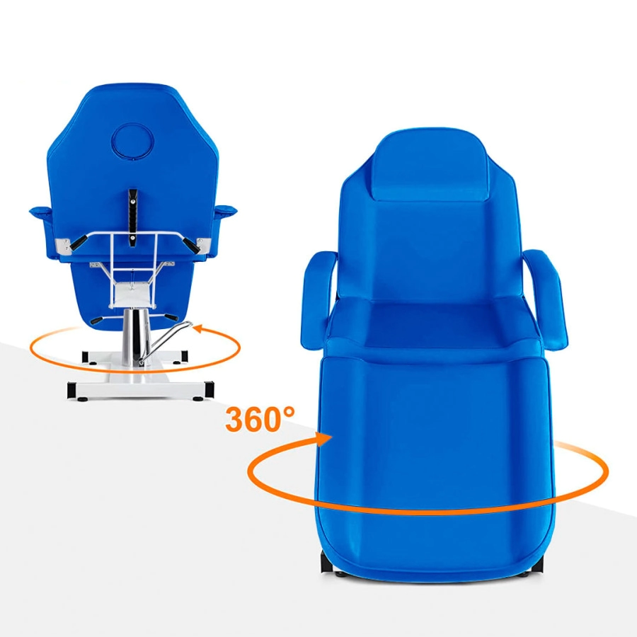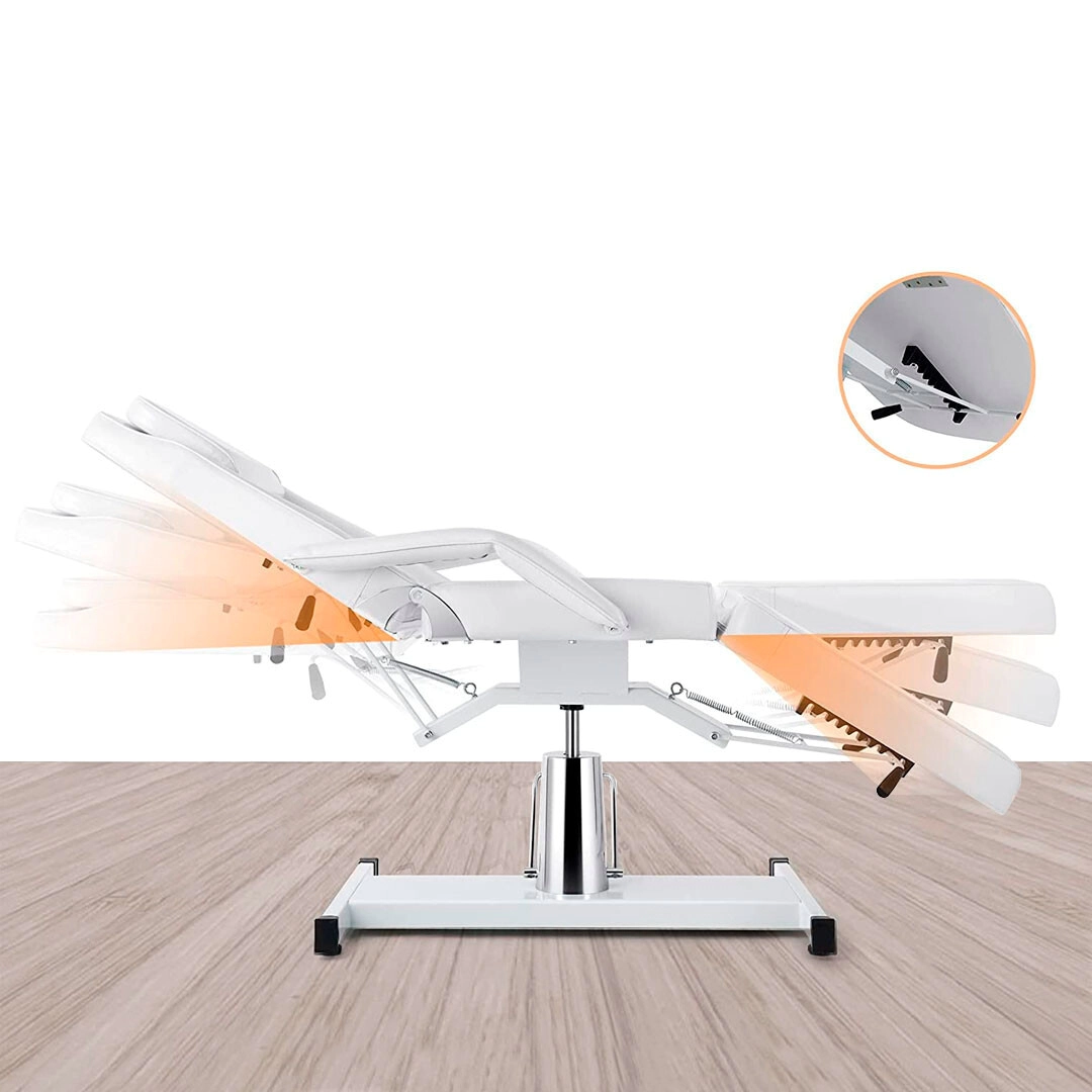 Con mecanismo de bloqueo que proporciona versatilidad y flexibilidad. La barra de pie facilita el ajuste de altura. La cama se puede ajustar fácilmente a múltiples posiciones de bloqueo con un mecanismo de liberación. La rotación libre ofrece una mejor comodidad para los esteticistas.