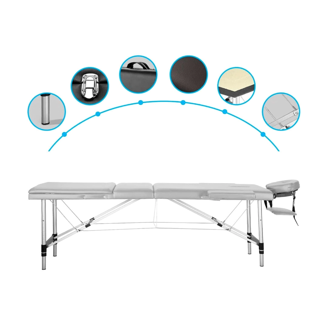 Esta camilla de masaje plegable está diseñada para máxima comodidad y funcionalidad, tapizado de calidad que asegura durabilidad y fácil limpieza. Incorpora esponja de alta densidad para un soporte ergonómico y firme. Con tres secciones, incluye respaldo y piernas ajustables, permitiendo personalizar la posición según las necesidades. Su alta calidad garantiza un uso prolongado y profesional.