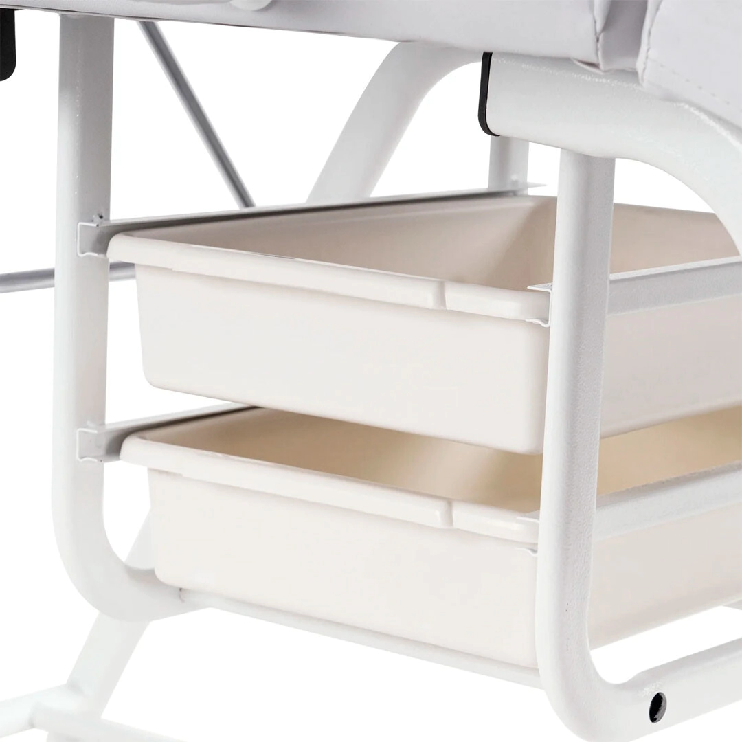Diseño humano: cojín para la cabeza extraíble con un orificio para la cara, que es conveniente para la conversión de posturas de masaje. Llena de esponja de rebote y espuma de alta densidad, y ensamblada con dos canastas de almacenamiento de alta capacidad, la cama garantiza una experiencia cómoda para el usuario desde cada pequeño detalle. Los clientes pueden disfrutar de una experiencia más completa gracias a la cama de belleza con diseño ergonómico.