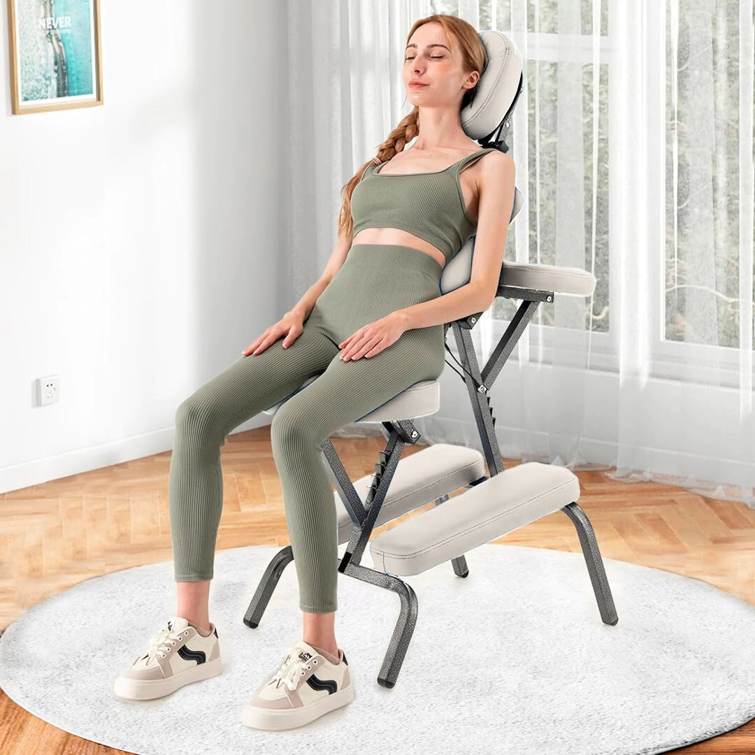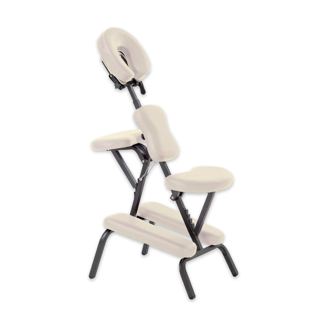 Apoyo para las rodillas - Apoyo en el pecho - Reposacabezas - marco de acero. Tapicería de cuero sintético de fácil limpieza. La silla es plegable para su fácil transporte y el relleno es de espuma de hasta 7 cm.
