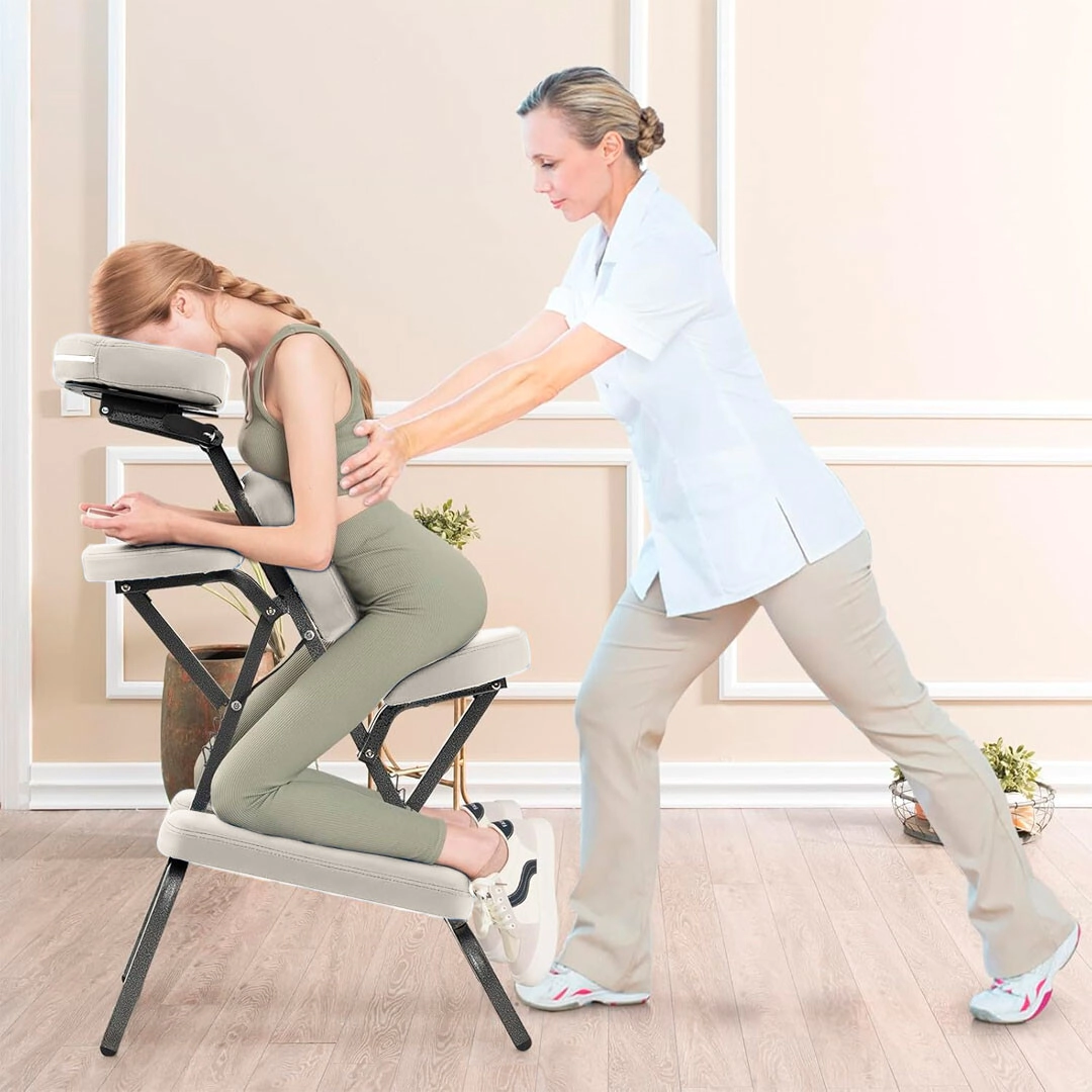 El masaje en silla ergonómica es adecuado para el tratamiento de las partes, tales como el cuello, los hombros, la espalda, sacro, así como los brazos, la cabeza y las manos, dando un listo de la relajación y la mejora de la circulación. Nuestra silla para el tatuaje y el masaje proporciona una experiencia única, incluso y especialmente en los tratamientos costosos, a largo plazo, le permite descargar el peso del cuerpo, y estar en una posición cómoda, El equipo preferido por los fisioterapeutas, masajistas y esteticistas. Gracias al soporte ajustable se adapta a cualquier altura, tamaño y trabajo en tan sólo 3 segundos!