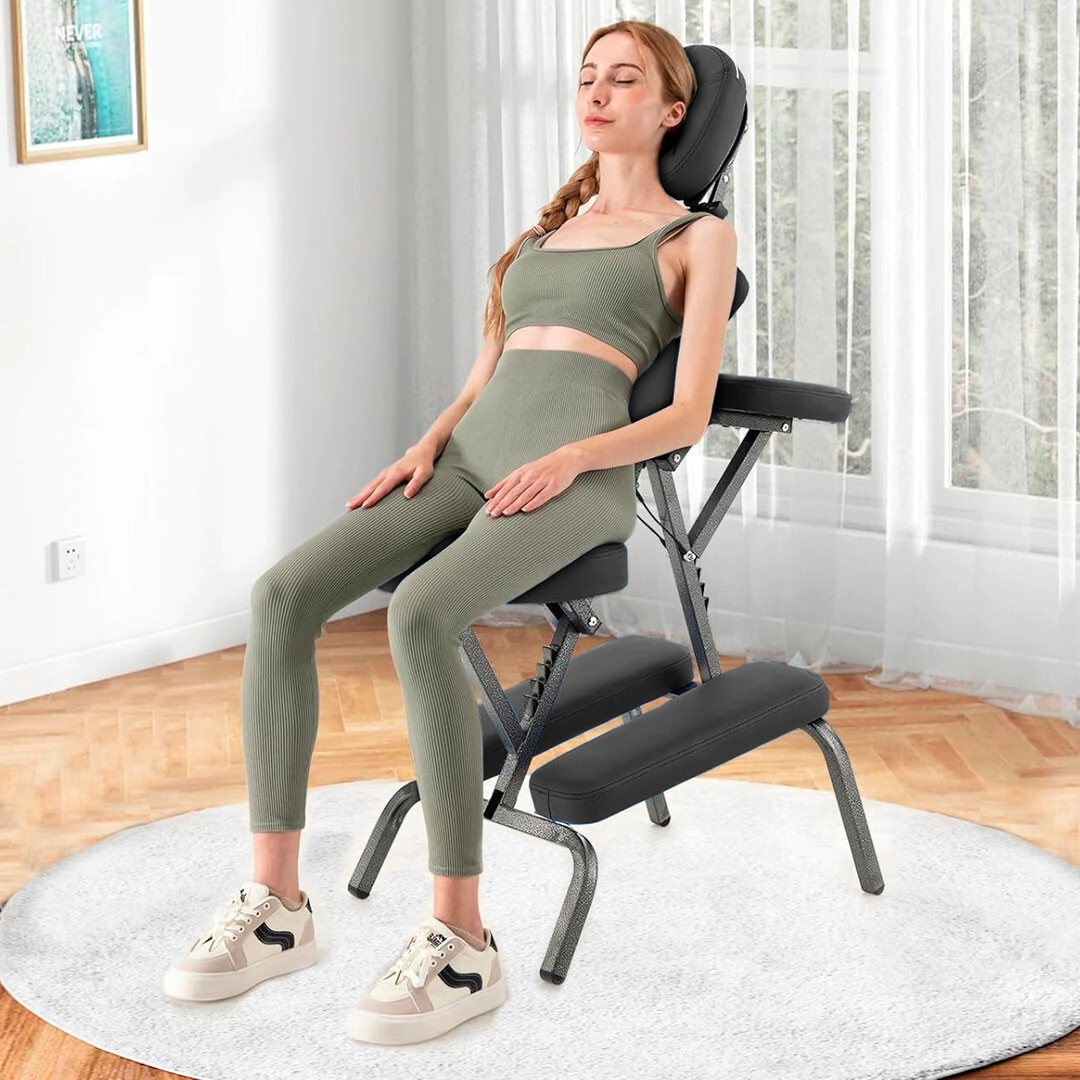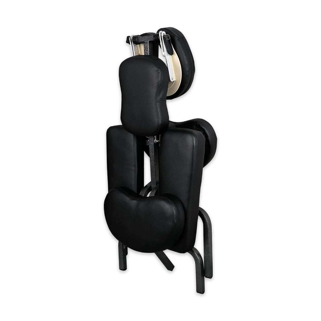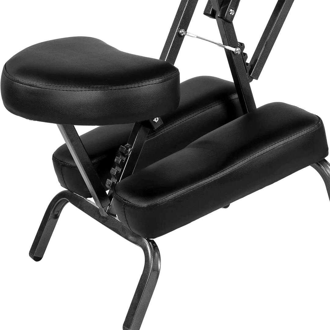 Apoyo para las rodillas - Apoyo en el pecho - Reposacabezas - marco de acero. Tapicería de cuero sintético de fácil limpieza. La silla es plegable para su fácil transporte y el relleno es de espuma de hasta 7 cm.
