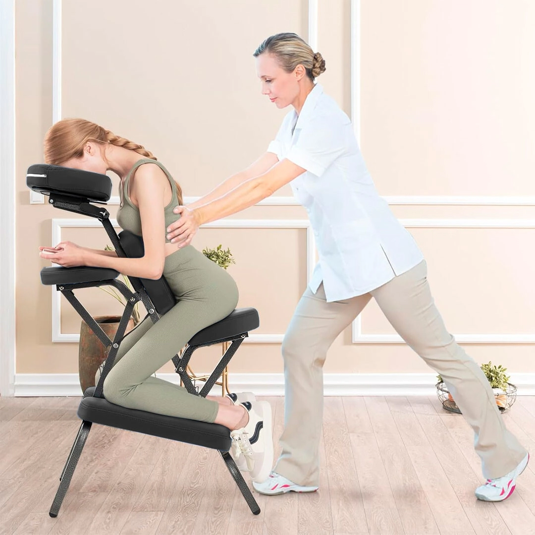 El masaje en silla ergonómica es adecuado para el tratamiento de las partes, tales como el cuello, los hombros, la espalda, sacro, así como los brazos, la cabeza y las manos, dando un listo de la relajación y la mejora de la circulación. Nuestra silla para el tatuaje y el masaje proporciona una experiencia única, incluso y especialmente en los tratamientos costosos, a largo plazo, le permite descargar el peso del cuerpo, y estar en una posición cómoda, El equipo preferido por los fisioterapeutas, masajistas y esteticistas. Gracias al soporte ajustable se adapta a cualquier altura, tamaño y trabajo en tan sólo 3 segundos!