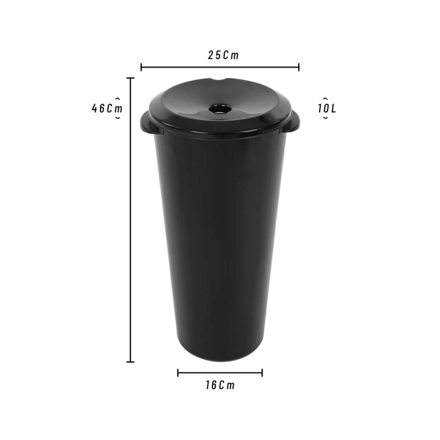 Este balde para bacha de lavacabezas es un accesorio práctico y funcional, diseñado para facilitar el manejo del agua durante el lavado de cabello. Fabricado en plástico resistente, cuenta con una tapa superior que incluye un orificio para el desage y un asa ergonómica para un fácil transporte. Su diseño cilíndrico y robusto lo hace ideal para uso profesional en peluquerías, ofreciendo durabilidad y una solución eficiente para recoger y desechar el agua residual.
