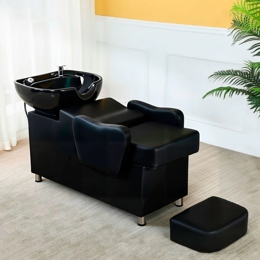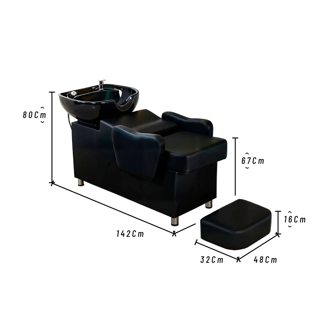 Este lavacabeza de bacha cerámica es perfecto para salones de peluquería y barberías, diseñada para garantizar comodidad durante lavados y masajes capilares. La bacha de cerámica, resistente y fácil de mantener, incluye grifería con manguera flexible para un enjuague preciso y ergonómico. El asiento tapizado en cuero sintético con respaldo y reposacabezas acolchado reduce la tensión en el cuello, mientras que la base ofrece estabilidad y un diseño funcional. Ideal para uso intensivo, combina durabilidad, higiene y un estilo clásico que eleva la experiencia en tu salón.