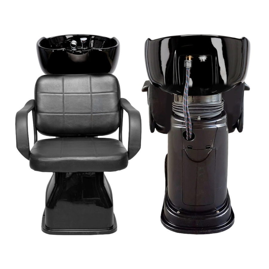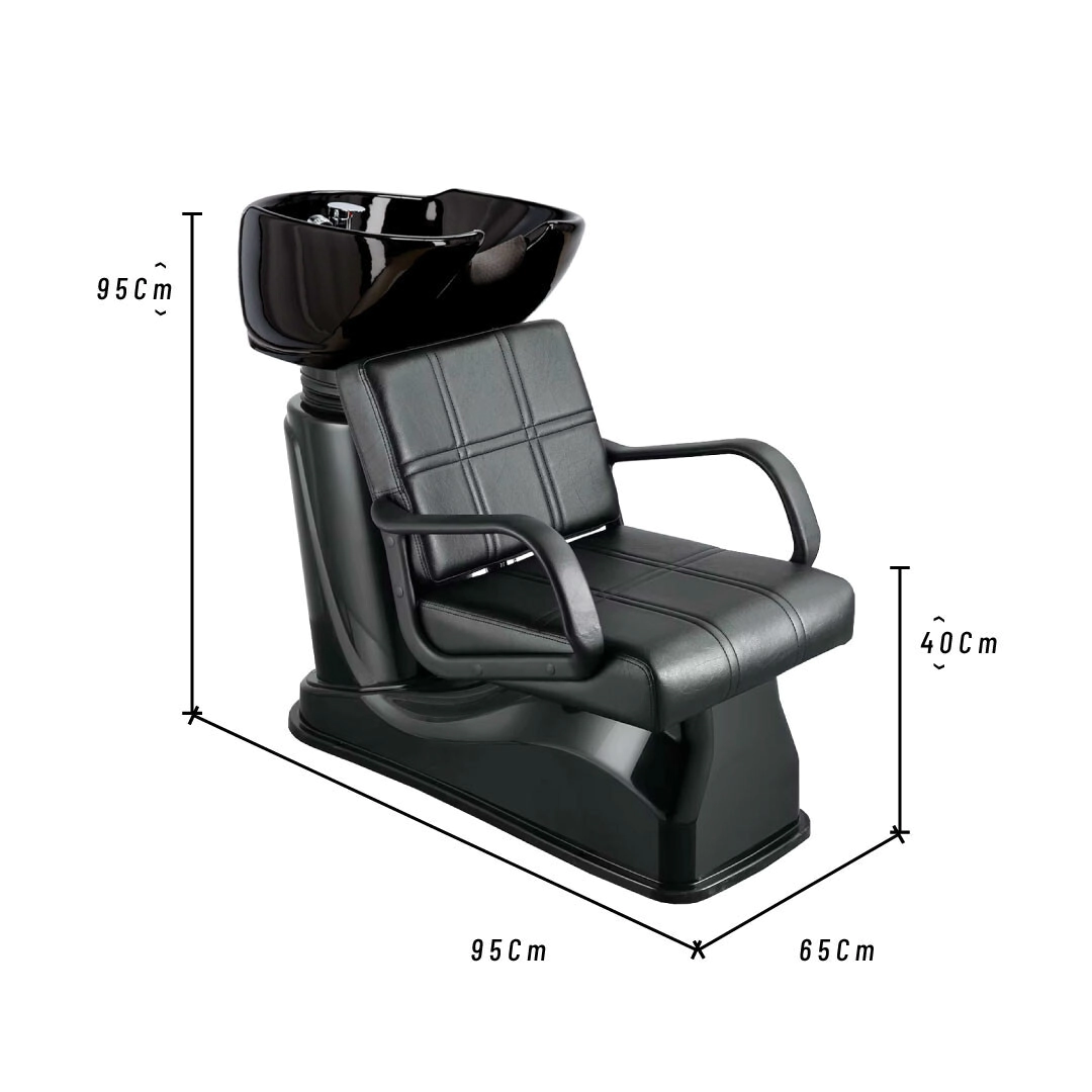 Estación de lavado profesional ideal para salones de peluquería y barberías, diseñada para ofrecer comodidad máxima al cliente durante los tratamientos y masajes capilares. Cuenta con una bacha de cerámica de alta calidad, duradera, elegante y fácil de limpiar, que incluye grifería completa con manguera flexible para un lavado preciso y ergonómico. El asiento acolchado proporciona un soporte cómodo y resistente, con reposabrazos y respaldo que alivia la tensión en el cuello y la espalda. La estructura base en forma curva asegura estabilidad y un diseño moderno que se integra perfectamente en espacios contemporáneos. Perfecto para uso intensivo, garantiza higiene, funcionalidad y un toque de lujo en tu salón de belleza.