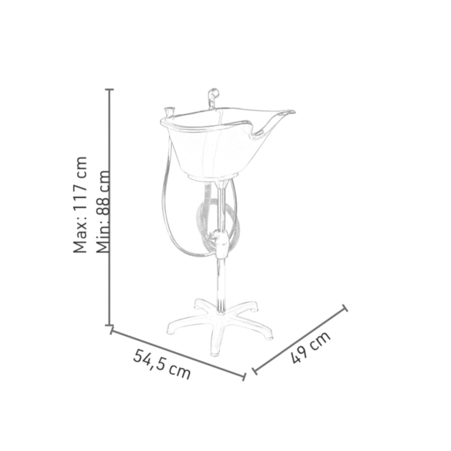 Bacha: La bacha con sistema de ajuste de altura es grande, lo que facilita las tareas del profesional al lavar el cabello largo y voluminoso;
