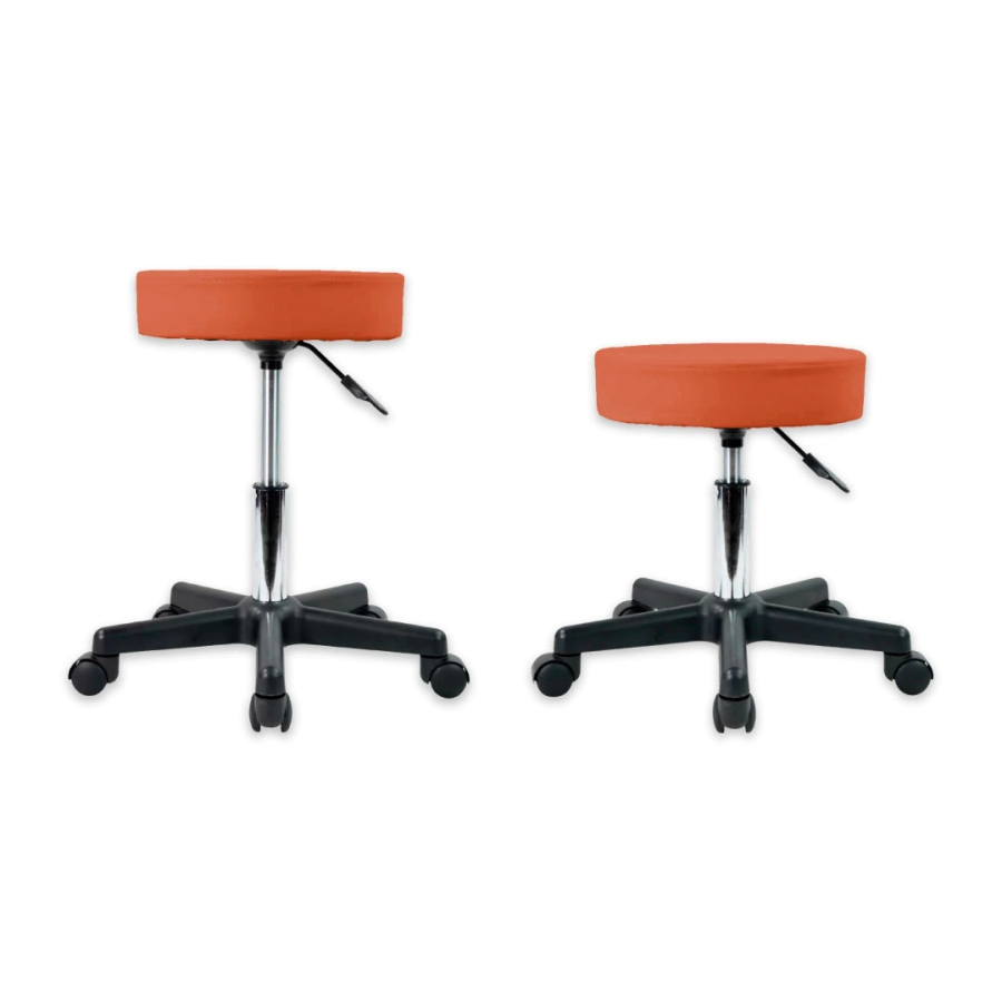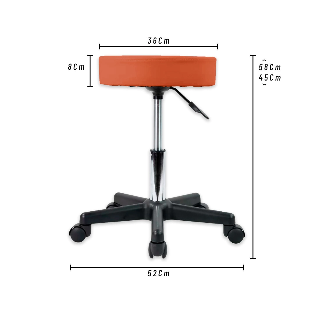 Un cómodo asiento de espuma gruesa y acolchada proporciona un apoyo firme sin sacrificar la comodidad, mientras tanto, el asiento ofrece una amplia superficie para sentarse. Un piston a gás hace que el ajuste de altura sea tan simple como tirar de una palanca. El diseño elegante y moderno de las ruedas giratorias del taburete es ideal para tu salon de estetica, manicuria, pedicuria, salon de tattoo, etc; El cojín del asiento del taburete rodante de cuero está hecho de cuero PU.