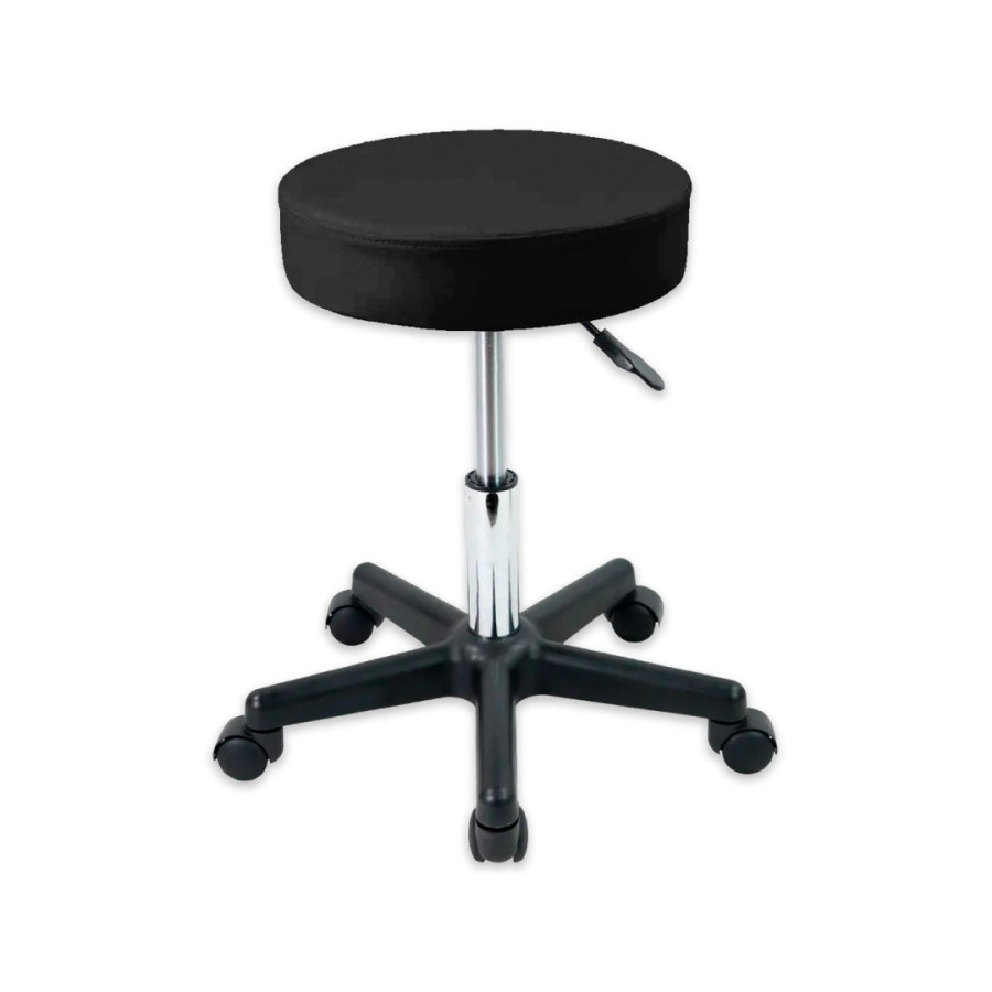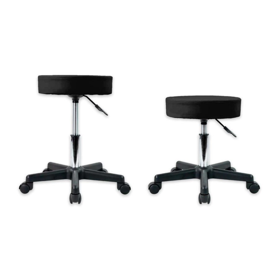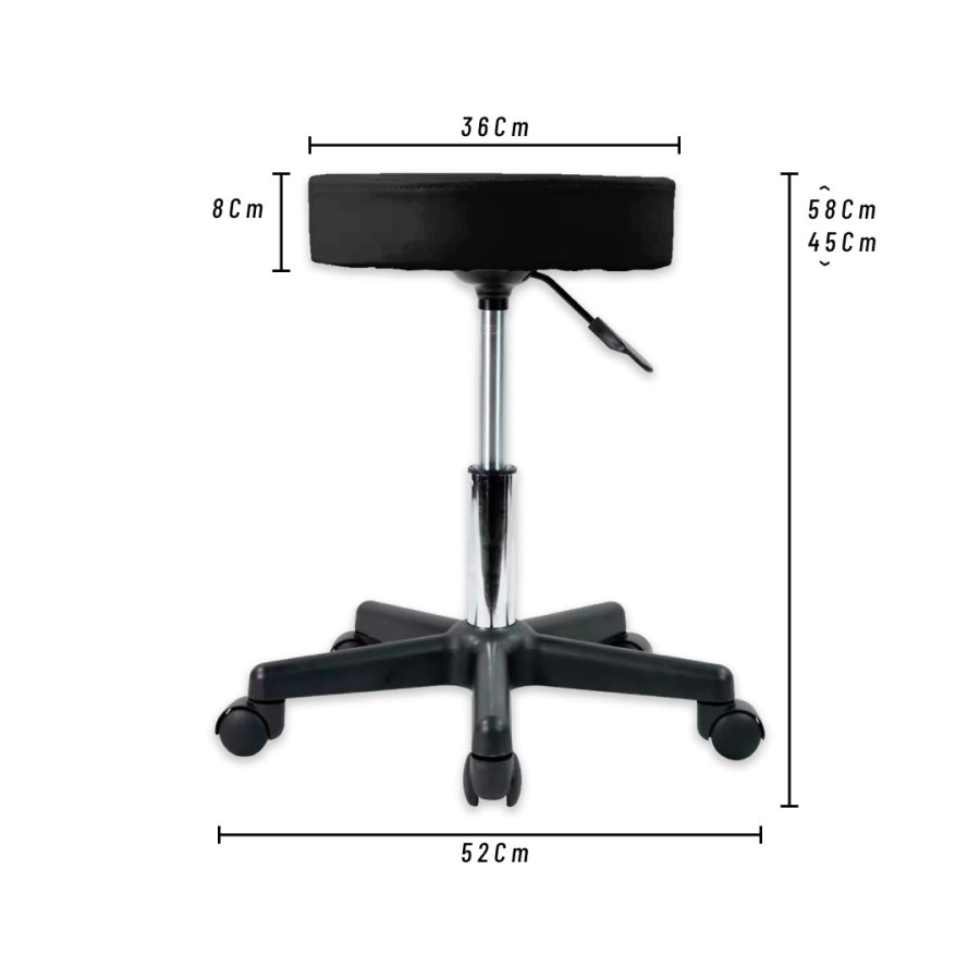 Un cómodo asiento de espuma gruesa y acolchada proporciona un apoyo firme sin sacrificar la comodidad, mientras tanto, el asiento ofrece una amplia superficie para sentarse. Un piston a gás hace que el ajuste de altura sea tan simple como tirar de una palanca. El diseño elegante y moderno de las ruedas giratorias del taburete es ideal para tu salon de estetica, manicuria, pedicuria, salon de tattoo, etc; El cojín del asiento del taburete rodante de cuero está hecho de cuero PU.