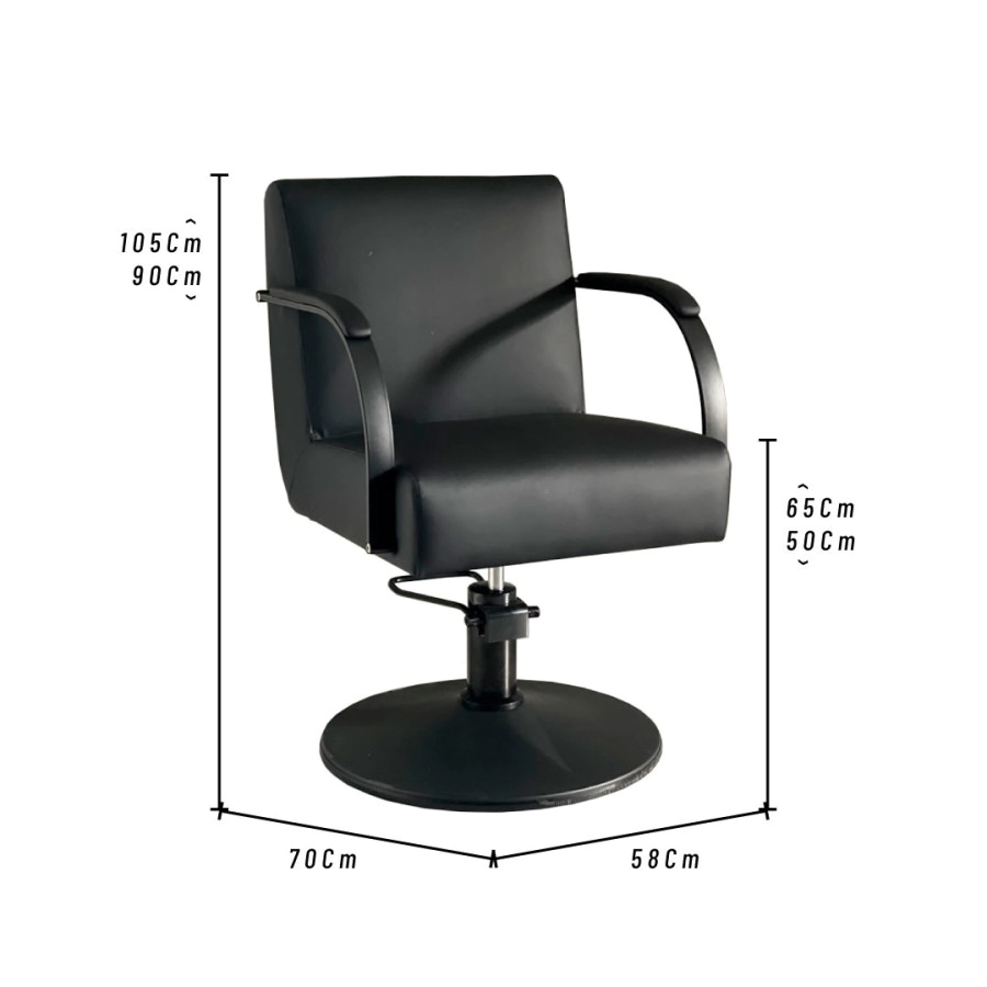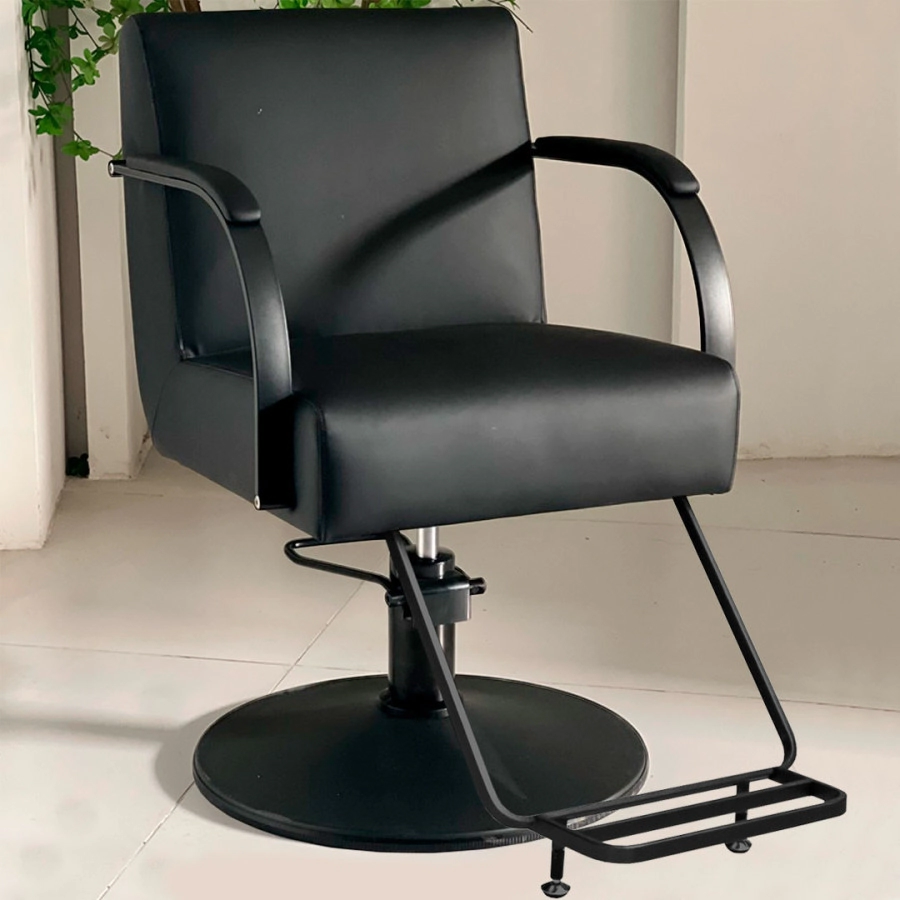 Diseño moderno y funcional, ideal para salones de belleza o barberías. Está tapizada en cuero con un acabado liso y un respaldo alto y recto para soporte ergonómico. Los reposabrazos son anchos y curvos, integrados al marco de la silla que complementa el tapizado. La base circular incluye un sistema hidráulico que permite ajustar la altura, ofreciendo estabilidad y versatilidad. Su estilo minimalista y robusto la hace perfecta para un uso prolongado en entornos profesionales.