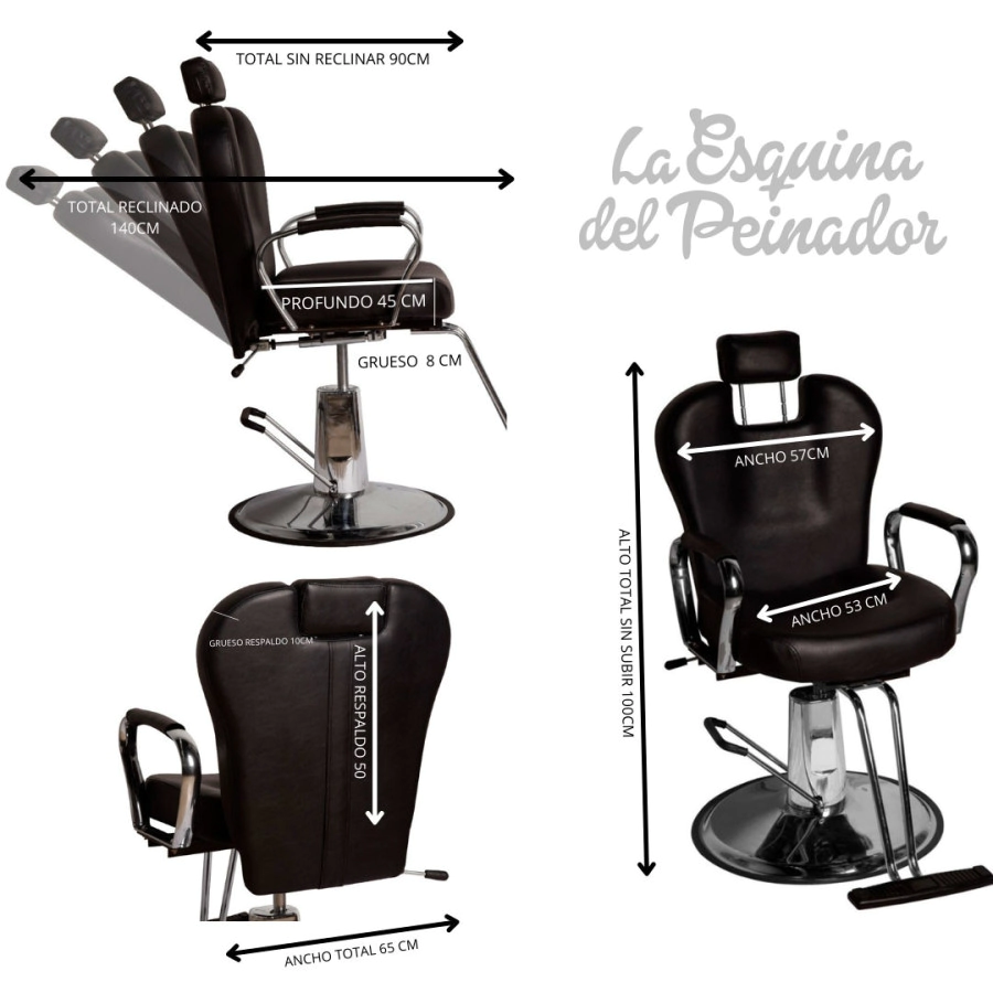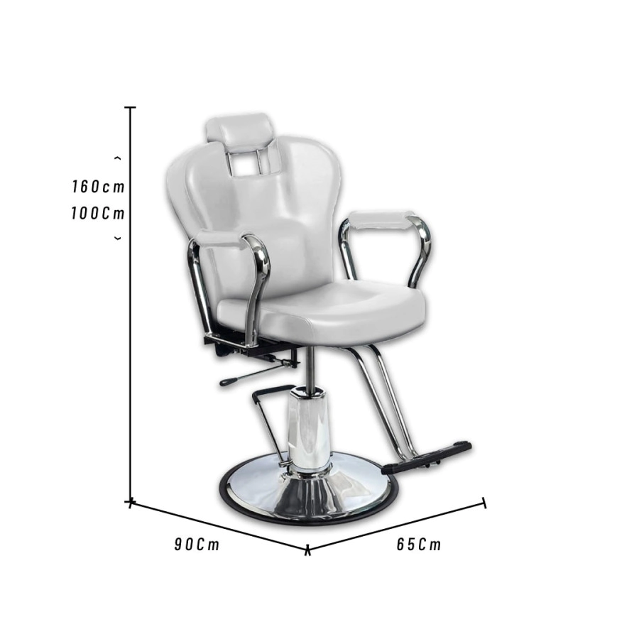 Confort y durabilidad del cuero Vinílico, la resistencia del metal, la practicidad de una silla hidráulica, el formato anatómico del respaldo de cabeza y soporte de pies. Es ideal para corte, coloración, maquillaje y trabajos faciales diversos.