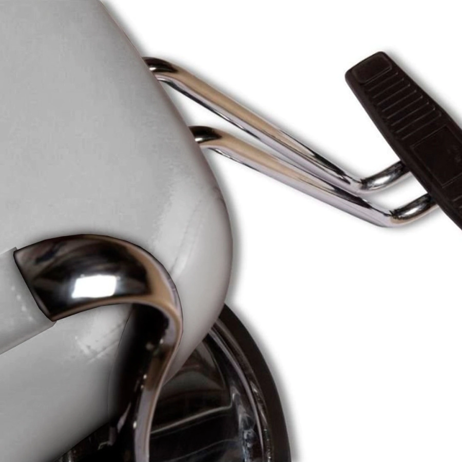 - El apoya pies es fijo de metal cromado con el extremo de caucho comprimido, material resistente al desgaste.