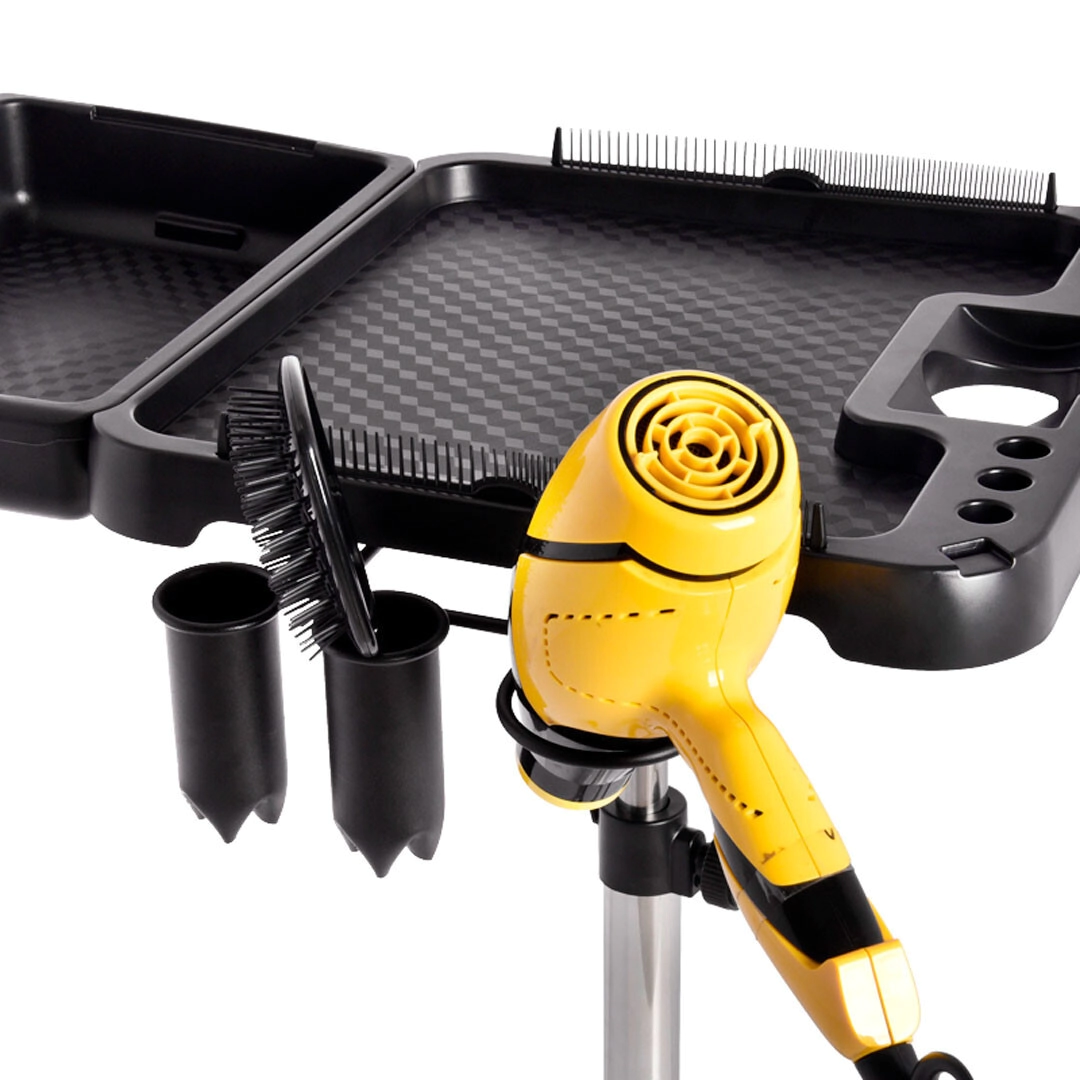 La altura del carrito de peluquería se ajusta fácilmente según las necesidades, ideal para guardar pelucas y otros utensilios de peluquería, ideal tanto para uso doméstico como en peluquería. Cuenta con un diseño de bandeja grande, de gran capacidad, estable y resistente, que permite colocar diversos utensilios de peluquería. Equipado con 5 ruedas universales, silenciosas al girar, flexibles y suaves.
