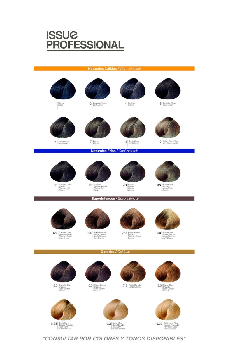 Issue Professional Color es la coloración profesional en crema gel. Su exclusiva fórmula con Protesil, protege el cabello asegurando mayor suavidad y duración del color. Brinda la posibilidad de tener cabellos siempre brillantes y luminosos garantizando una perfecta cobertura de canas.