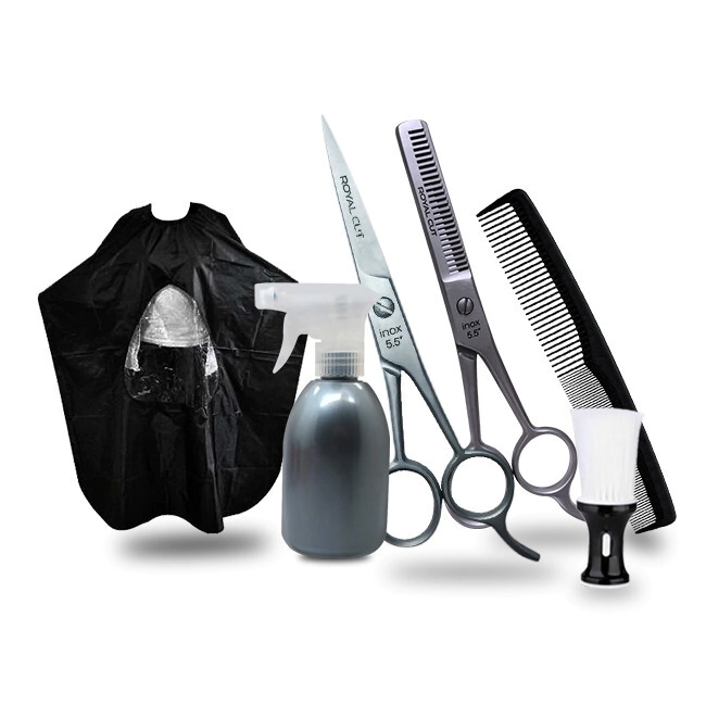 COMBO: TIJERAS, PEINE,  CAPA, ROCIADOR