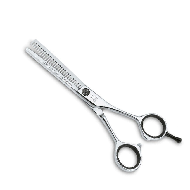 Azabache Es28 es una tijera de peluquería de esculpir 3 Claveles con filo de navaja, para técnicas de corte de cabello avanzadas.