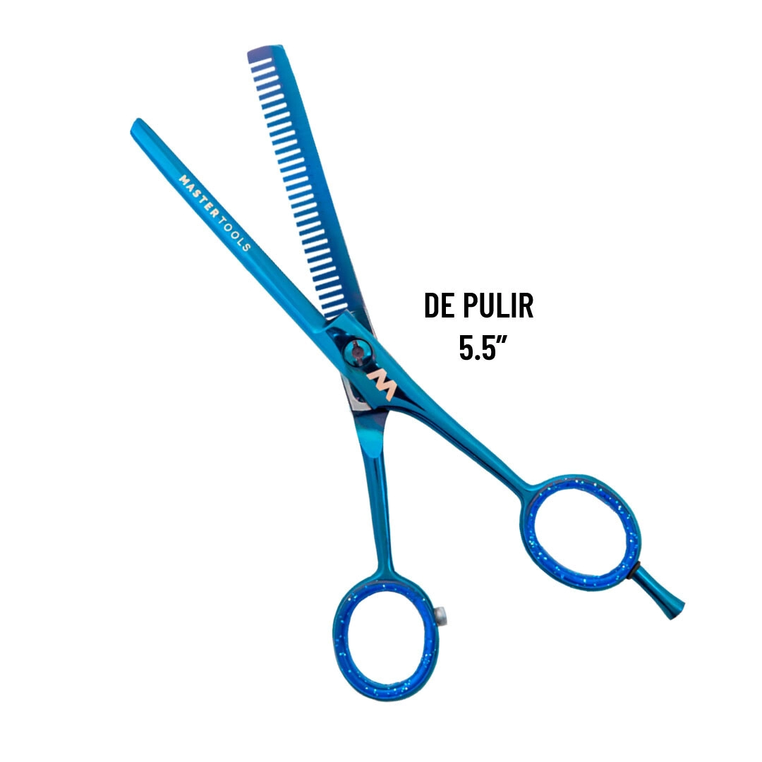 Esta tijera Mastertools de la línea Professional, con un vibrante acabado en azul metálico y detalles brillantes en los anillos, es una herramienta de corte recto fabricada en acero inoxidable de alta calidad para mayor durabilidad y resistencia a la corrosión. Sus cuchillas convexas y afiladas ofrecen cortes precisos y suaves en cabello húmedo o seco, ideales para técnicas de peluquería y barbería profesional. El diseño ergonómico con mangos offset y tensión ajustable minimiza la fatiga en la mano durante usos prolongados. Perfecta para estilistas que buscan estilo, precisión y comodidad en su kit diario.